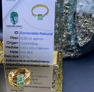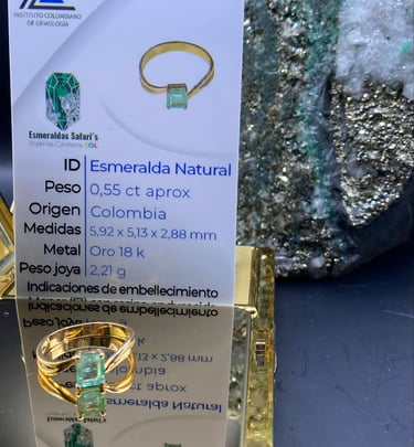 Ofrecemos esmeraldas y joyas en oro de 18.k con certificación del Instituto Gemológico de Colombia y laboratorio químico de limpieza Odal Gems ,garantizando confianza y calidad.