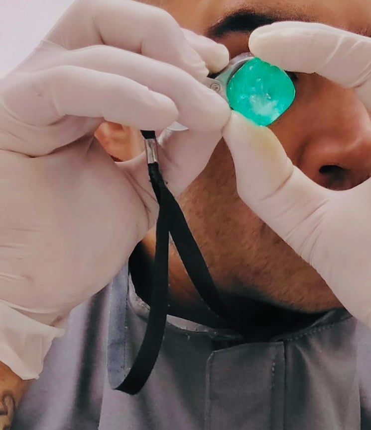 Cuando la esmeralda sale de la mina, comienza su proceso de revelación. En esta etapa contamos con Odal Gems Laboratory, nuestro aliado experto en limpieza, estabilización y tratamiento profesional de la piedra.